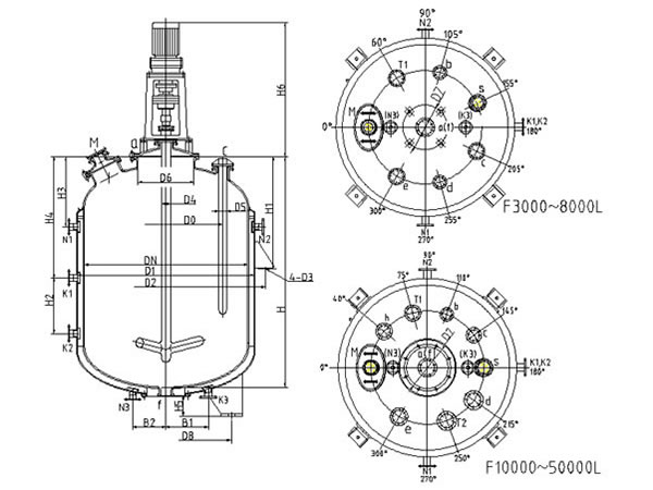 The design pressure inside the tank is not more than 1.0MPa and the volume of tank is 3000 to 50000 L. The design pressure of the jacket is up to 0.6MPa. The temperature of the media inside the tank and the jacket is -20℃ to 200℃.