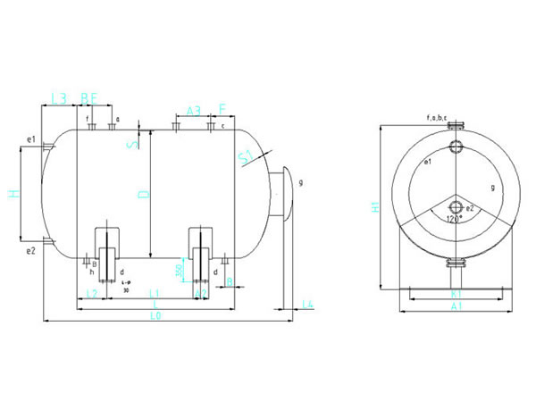 Dimensions of Horizontal Glass Lined Storage Tank, 3000L-12500L| Dimensions (mm) | ||||||||||||||